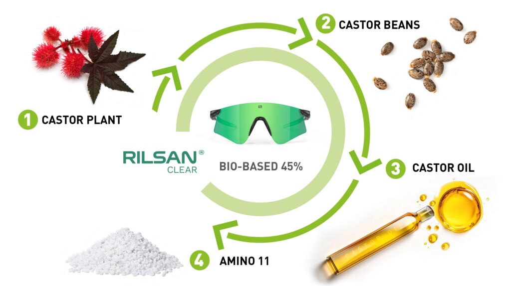 כמו בכל דגמי הספורט שלנו, ניתן להתאים קליפון פנימי עבור עדשות אופטיות בטווח מרשמים רחב. המסגרת עשויה Rilsan Clear , פולימר ממקור אורגני המופק מ-45% שמן קיק. חומר ידידותי לסביבה זה הוא עדות למחויבות שלנו לייצור בר-קיימא ואחראי. ע”י שימוש בחומר זה אנו יכולים להפחית את התלות שלנו בחומרי פלסטיק ממקורות מזהמים ולתרום לעתיד ירוק יותר עבור כדור הארץ שלנו.